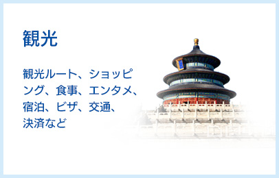 観光ルート、ショッピング、食事、エンタメ、宿泊、ビザ、交通、决済など